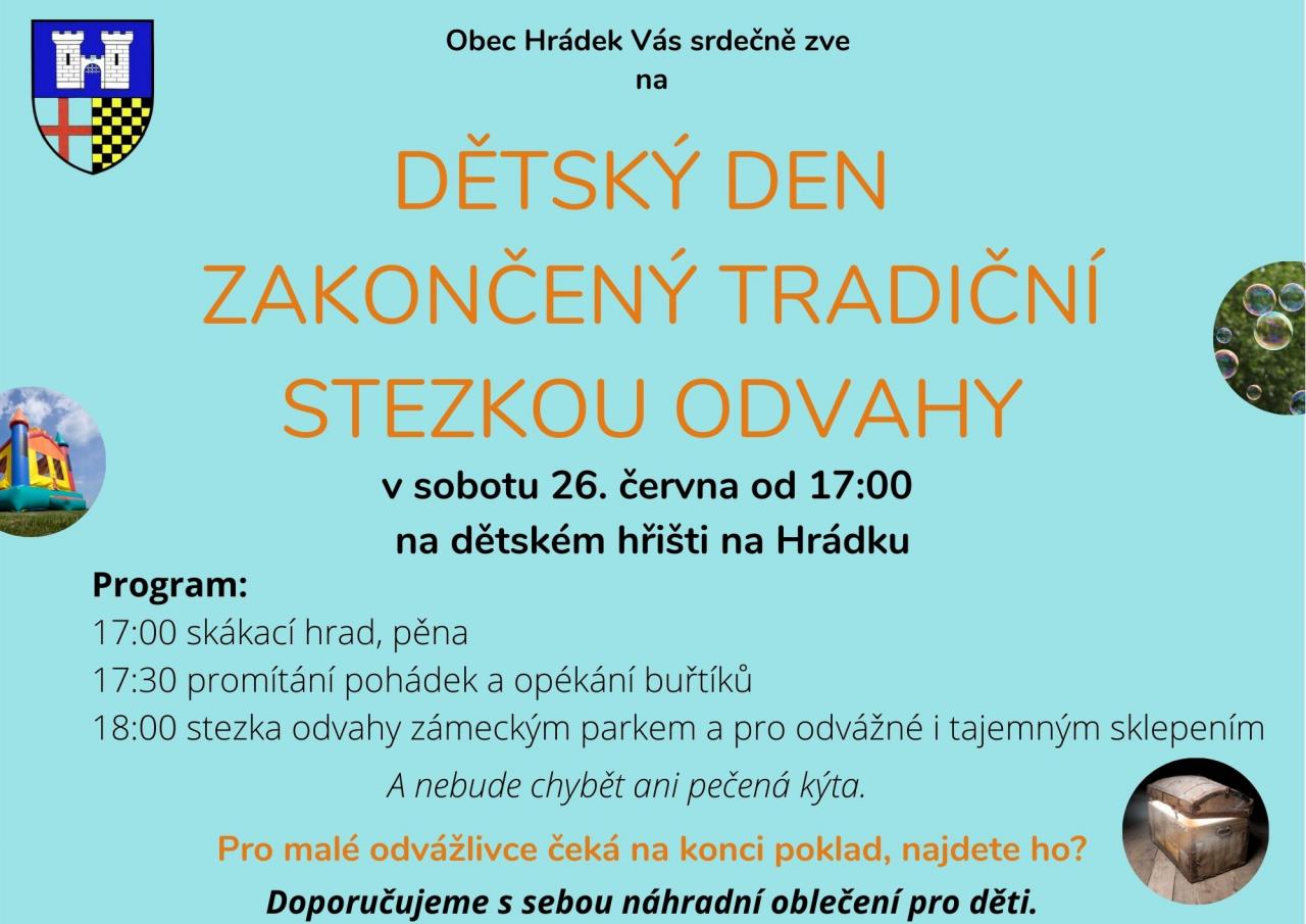 Srdečně Vás zveme na tradiční dětský den a stezku odvahy,
