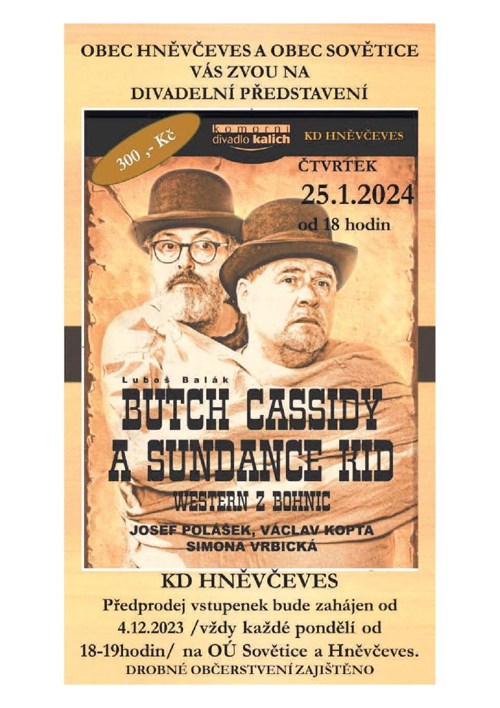 Pozvánka na divadelní představení 25.1.2024 do Hněvčevse